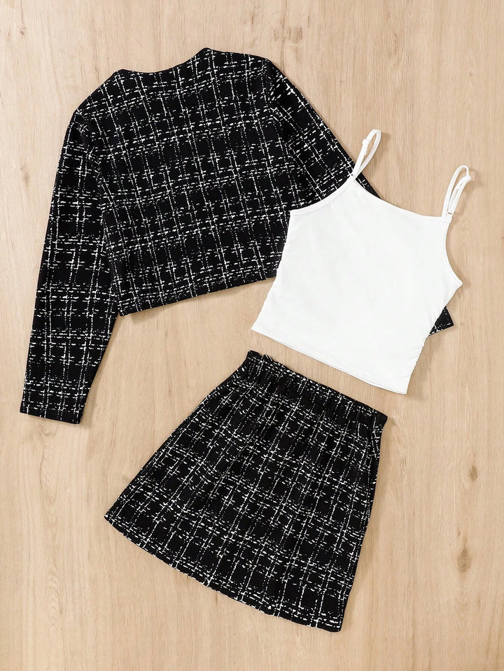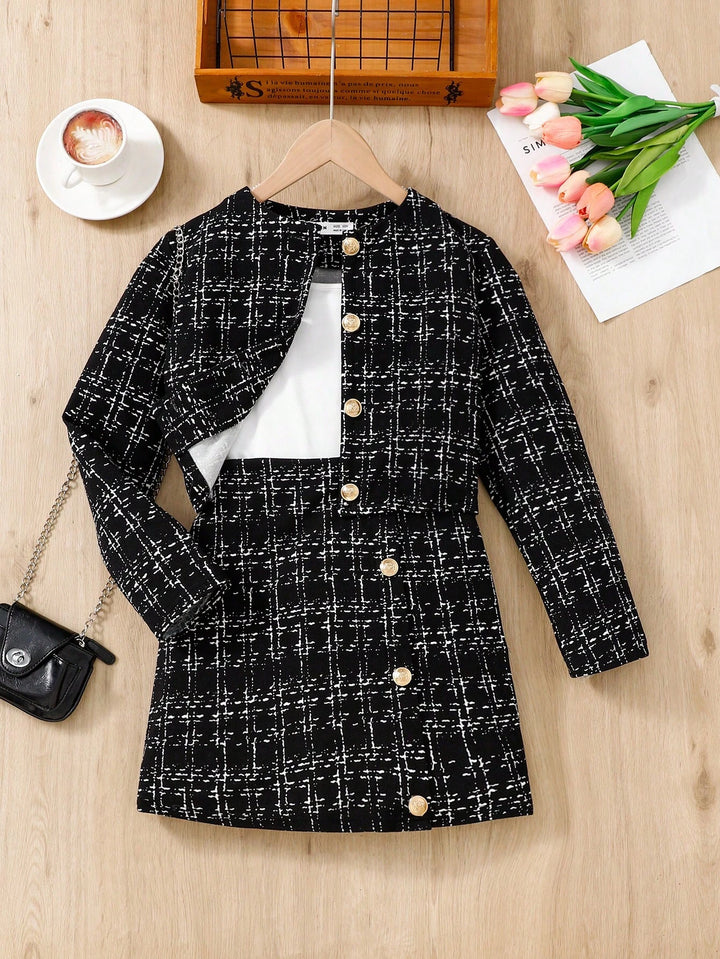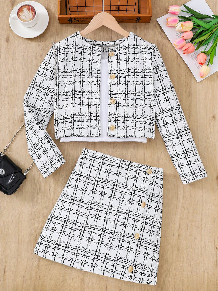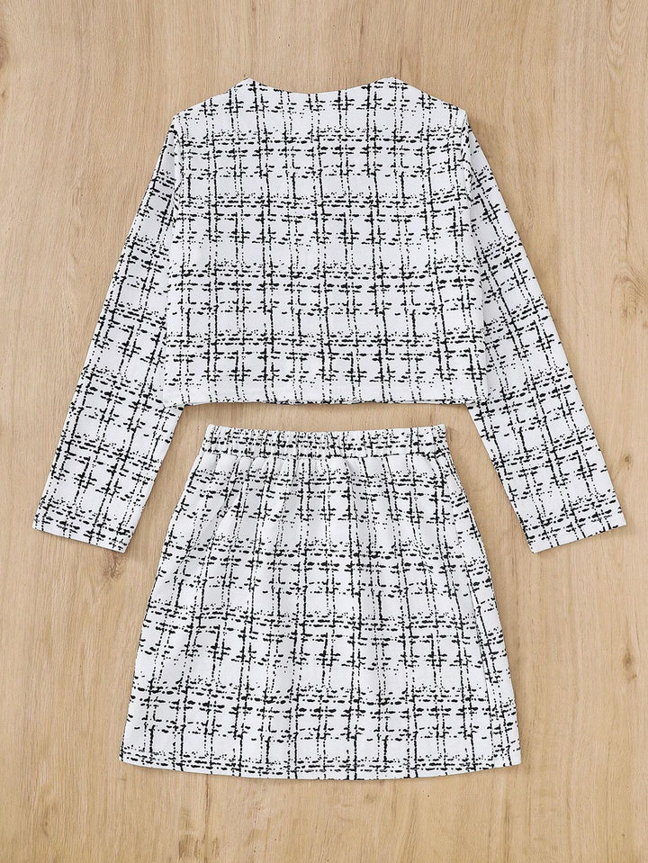 Tween Girls 2pcs/Set Urban Chic Long Sleeve Jacket & Bodycon Skirt