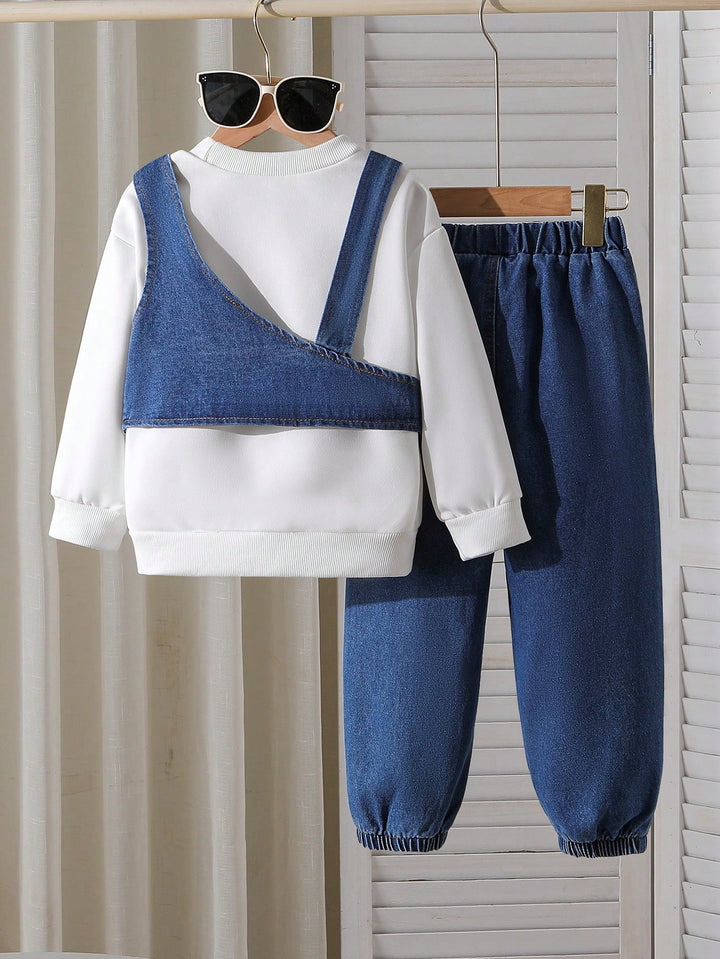 Young Boy Casual Set: Solid Color Sweatshirt + Loose Fit Jeans + Stylish Denim Vest