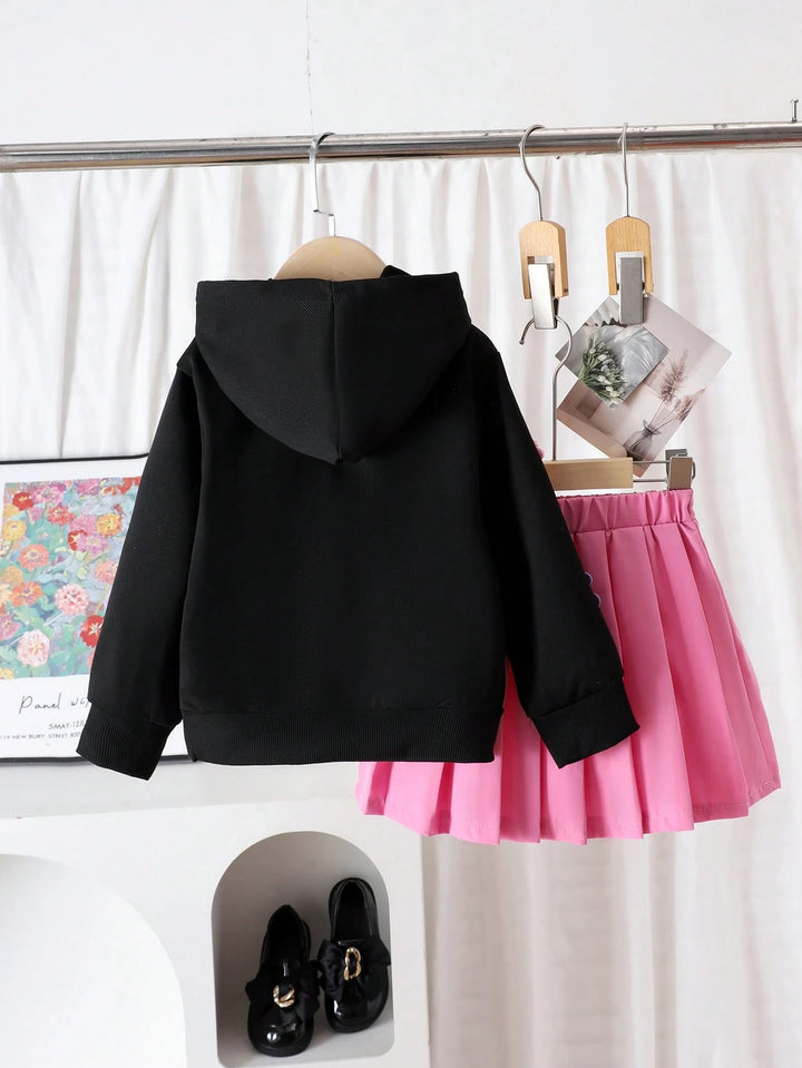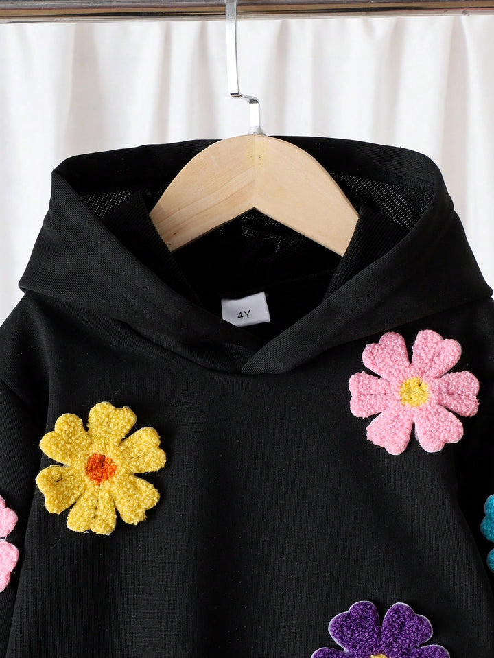 Young Girl Adorable 3D Flower Hoodie Sweatshirt And Pleated Skirt Set